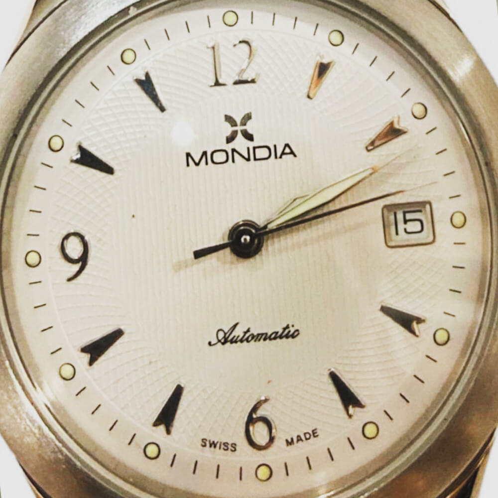 In the 1960s, Mondia embarked on a phase of great innovation and prestige. The brand began experi- menting with more sporty designs and chronographs with increasingly precise movements, aiming to com- bine functionality and style. Some models offered advanced features, such as GMT for those travelling between time zones, a tachymeter for measuring speed and increasingly reliable water resistance, confirming the company’s commitment to technical quality. An emblematic example of this period is the Mondia Chronograph 17 Rubis, launched in the 1960s and now highly sought after by collectors. This wa- tch perfectly represented Mondia’s innovative and prestigious spirit: combining precision, attractive de- sign and craftsmanship, it became a symbol of Swiss excellence in the world of watchmaking. In the 1970s, Mondia experienced a period of great expansion but also significant challenges. Numerous models in brushed steel, automatic chronographs and quartz watches were launched, demonstrating the brand’s capacity for innovation. However, the so-called “quartz crisis” was beginning to take its toll: Mondia, like many other Swiss brands, struggled to keep up with growing competition from Seiko and Casio. Despite the difficulties, the design became bold and experimental: orange, blue and green dials, oversized cases, expressing the brand’s desire to keep up with the times and attract new enthusiasts. In the 1980s and 1990s, Mondia underwent a period of restructuring. The brand was absorbed by Dixi SA, resulting in a reduction in production and a temporary exit from the global market. The brand’s presence became more discreet: few models were produced, often with external components, but the traditional craftsmanship and reputation for quality continued to characterise every Mondia timepiece, ready for a future revival.